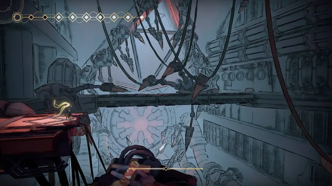 In just a short movement sequence, the player needs to combine: jump, air attack, double jump, slow landing, pogo, stick to the ceiling, hook shot, avoid obstacles and land in the right position of the lever to continue coordinating the combo move (as above) in the next segment but with a different order, with different fast and slow speeds.