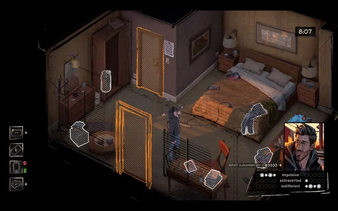 For example, if the player discovers a way to open the door before the loop, instead of “resetting” it would have fast-forwarded to this place, the player would be forced to redo the steps, such as talking to the psychologist, then standing up outside the door and pressing play on the phone to let it fast-forward nearly in time just to… open the door, too cumbersome!